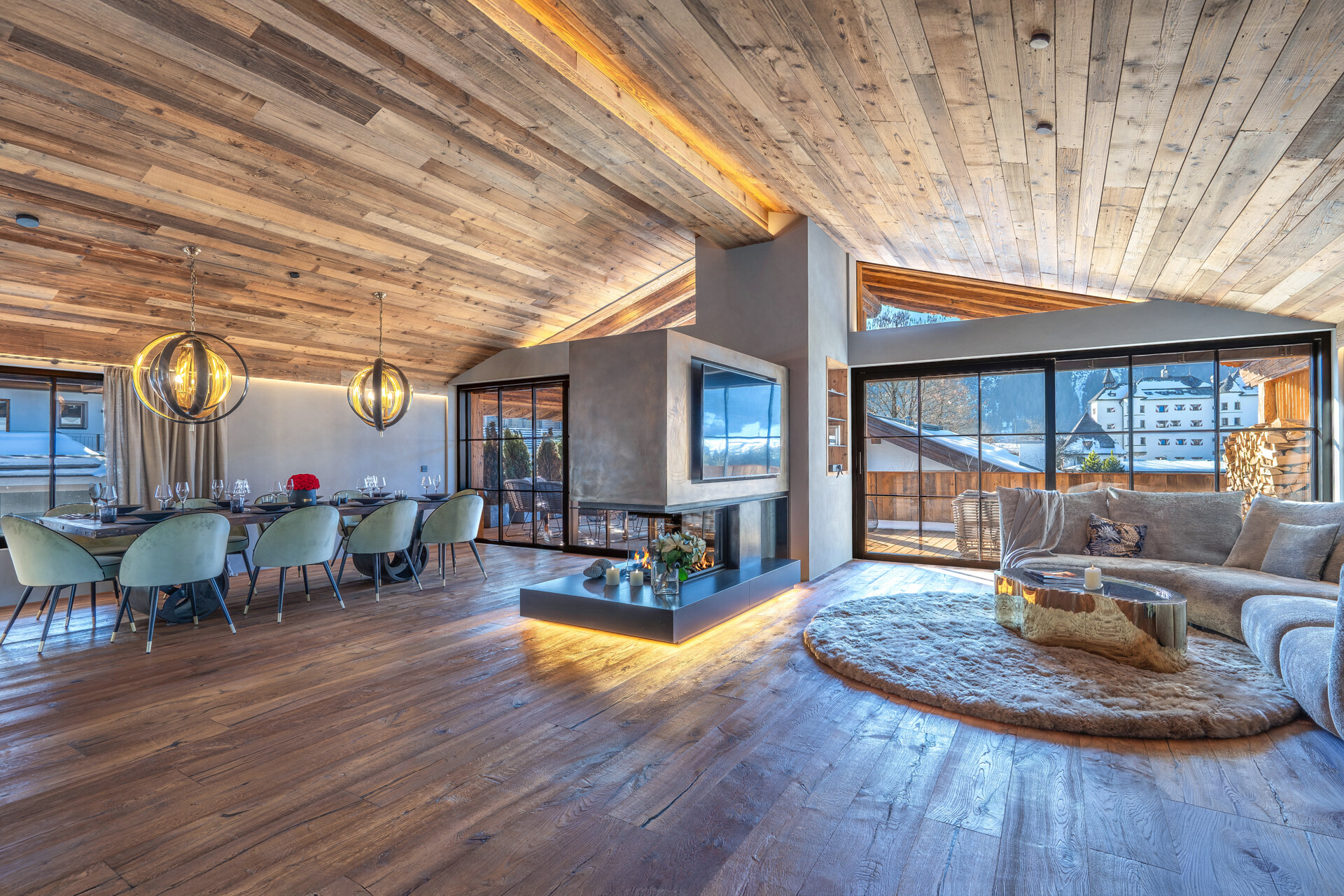 In sonniger und absolut ruhiger Lage von Reith bei Kitzbühel präsentiert sich dieses außergewöhnliche Neubau-Chalet als exklusive Rückzugsoase auf höchstem Niveau – mit eindrucksvollem Blick auf das historische Schloss Münichau und die umliegende Bergwelt. Klare Architektur, modernste Gebäudetechnik und edelste Materialien verbinden sich hier zu einem Wohnkonzept, das Luxus, Privatsphäre und alpinen Lifestyle perfekt vereint. Das Chalet beeindruckt bereits beim Betreten durch großzügige Raumdimensionen und eine elegante, zeitlose Innenarchitektur. Herzstück des Hauses ist der offen gestaltete Wohn- und Essbereich mit raumhohen Glasflächen, stilvollem Kamin und einer designorientierten Profiküche inklusive Kochinsel und separater Back-Kitchen – ideal für repräsentatives Wohnen ebenso wie für private Genussmomente. Auf rund 438 m² Wohnnutzfläche (ca. 356 m² reine Wohnfläche) verteilen sich fünf Schlafzimmer sowie vier hochwertig ausgestattete Badezimmer, wodurch Familien und Gäste gleichermaßen höchsten Komfort und Privatsphäre genießen. Großzügige Terrassenflächen, Balkon und Garten erweitern den Wohnraum ins Freie und eröffnen eindrucksvolle Ausblicke auf den Wilden Kaiser und die umliegende Naturlandschaft. Ein besonderes Highlight bildet der exklusive Private-Spa-Bereich mit Indoor-Pool samt Gegenstromanlage, Sauna und voll ausgestattetem Fitnessraum – ein Ort der Erholung auf Resortniveau. Ergänzt wird das Angebot durch einen Multimedia-/Kinoraum mit Bar sowie einen klimatisierten Weinkeller für besondere Genussmomente. Auch technisch setzt die Immobilie Maßstäbe: Erdwärmeheizung, Photovoltaikanlage, Loxone-Smart-Home-System, gekühlter Sichtdachstuhl, elektrische Raffstores sowie hochwertigste Wandoberflächen in Biolehm-Spachteltechnik sorgen für nachhaltige Energieeffizienz und modernsten Wohnkomfort. Eine Doppelgarage mit E-Ladestation sowie zusätzliche Außenstellplätze komplettieren dieses außergewöhnliche Angebot. Die Lage verbindet Ruhe und perfekte Infrastruktur: Der Schwarzsee, mehrere renommierte Golfplätze sowie die Kitzbüheler Bergbahnen sind in wenigen Minuten erreichbar, während internationale Top-Events wie das Hahnenkamm-Rennen oder das Polo-Turnier die exklusive Lebensqualität dieser Region zusätzlich unterstreichen.