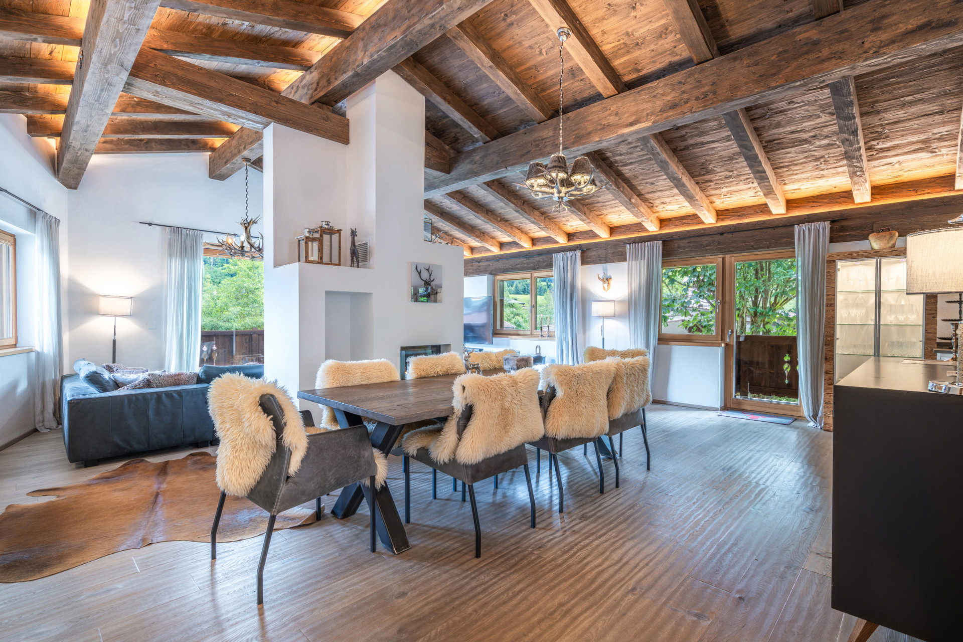 Dieses neuwertige Chalet befindet sich in einer ruhigen Lage von Kirchberg - nur wenige Minuten von der Maierlbahn und der Talstation Pengelstein entfernt. Die Nähe zu diesen beiden Liften eröffnet direkten Zugang in eines der größten und abwechslungsreichsten Skigebiete der Alpen - ein echtes Highlight für Wintersportbegeisterte. Auch im Sommer punktet die Lage mit einer idealen Anbindung an zahlreiche Wander- und Bike-Strecken sowie die unmittelbare Nähe zur Natur. Die Liegenschaft erstreckt sich über drei Etagen und bietet eine Wohnfläche von rund 222 m². Aufgrund einer durchdachten Planung wurde die Hanglage des Grundstücks optimal genutzt, wodurch auch das Untergeschoss mit viel Tageslicht begeistert. Hier befinden sich zwei gemütliche Schlafzimmer, ein Wellnessbereich mit Sauna, ein Badezimmer, ein separates WC sowie ein Hauswirtschaftsraum und der Technikraum. Im Erdgeschoss empfängt Sie ein einladender Eingangsbereich. Der Masterbereich mit eigenem Bad und Zugang zum Balkon bietet Rückzug auf höchstem Niveau. Ein weiteres Schlafzimmer mit Bad en suite und direktem Gartenzugang rundet dieses Ebene ab - ideal für Gäste oder als ruhiger Arbeitsbereich. Das Obergeschoss bildet das Herzstück des Hauses. Der offene Wohn- und Essbereich mit Sichtdachstuhl schafft ein luftiges Raumgefühlt und wird durch einen Kamin elegant zoniert. Zwei Balkone bieten schöne Ausblicke auf die umliegende Bergwelt, bis hin zum Rettenstein. Ein Gäste-WC sowie ein praktischer Abstellraum ergänzen diese Etage. Mit seiner hochwertigen Ausstattung, der gelungenen Raumaufteilung und der hervorragenden Lage vereint dieses Chalet alpinen Wohnkomfort mit urbaner Nähe und Naturerlebnis.