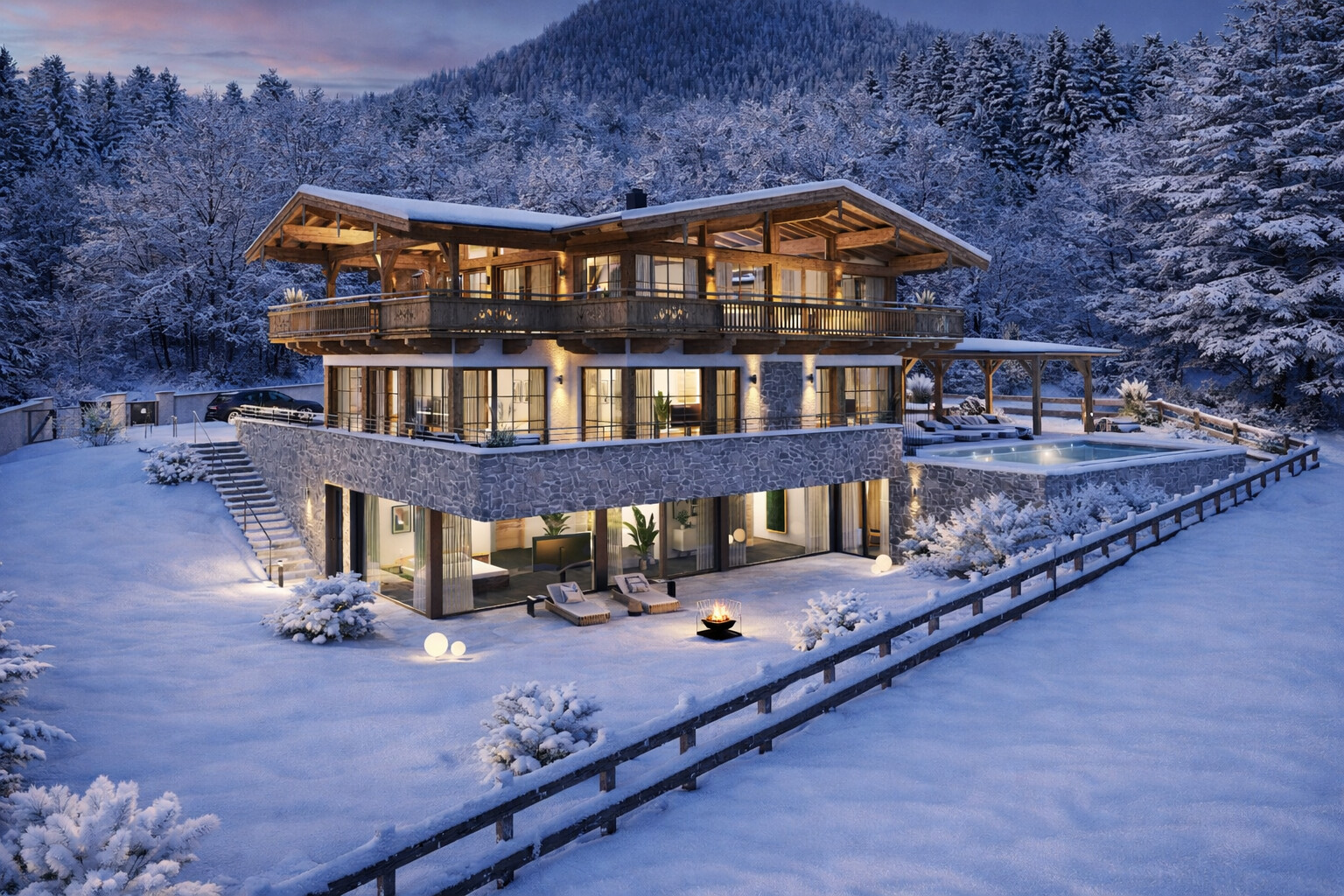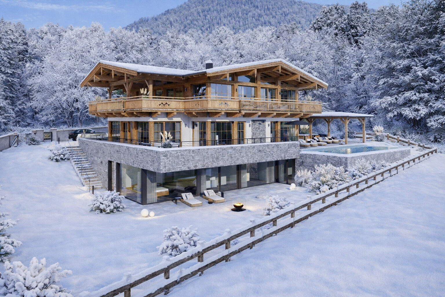 In einer der begehrtesten Lagen von St. Johann in Tirol entsteht dieses herausragende Neubauprojekt, das mit seiner perfekten Symbiose aus moderner Architektur und alpiner Eleganz neue Maßstäbe setzt. Umgeben von unberührter Natur, bietet das Haus nicht nur einen spektakulären Blick auf das Kitzbüheler Horn und den Wilden Kaiser, sondern auch ein Höchstmaß an Privatsphäre und Komfort. O b e r g e s c h o s s: Der großzügige, offene Wohn-, Koch- und Essbereich mit sichtbarem Altholzdachstuhl und luxuriösem Kamin schafft eine außergewöhnliche Wohlfühlatmosphäre. Die High-End-Küche ist ein Highlight für alle, die das Kochen lieben und hohe Ansprüche an Qualität und Design stellen. Der rund um das Haus verlaufende überdachte Freisitz lädt mit einem atemberaubenden Bergblick zum Entspannen ein, während das Büro und die praktischen Zusatzräume höchsten Komfort bieten. E r d g e s c h o s s: Der Masterbereich dieses Hauses ist ein wahres Meisterstück: Ein Schlafzimmer mit freistehender Badewanne, Regendusche und einer eleganten Ankleide bietet den perfekten Raum für Erholung und Luxus. Drei weitere Schlafzimmer mit Bad en Suite sorgen für ausreichend Platz und Komfort für Familie und Gäste. Der Fitnessraum und der beeindruckende Außenbereich mit Infinitypool, Whirlpool und Daybeds vervollständigen dieses außergewöhnliche Angebot. U n t e r g e s c h o s s: Im Untergeschoss finden Sie eine Einliegerwohnung, einen Wellnessbereich mit Sauna sowie einen Weinkeller, der Liebhabern edler Tropfen gerecht wird. Ein großzügiger Technikraum, ein Wirtschaftsraum und eine Tiefgarage mit vier Stellplätzen bieten zusätzlich Komfort und Funktionalität. Das Haus befindet sich in absolut ruhiger und dennoch zentraler Lage am Waldrand, mit ungestörtem Blick auf die imposanten Alpen. Die Umgebung bietet Ihnen sowohl Naturverbundenheit als auch eine hervorragende Anbindung an alle wichtigen Einrichtungen des täglichen Lebens. Individuelle Gestaltungsmöglichkeiten sind möglich, da das Projekt in zwei Varianten angeboten wird – so können Ihre persönlichen Wünsche und Bedürfnisse optimal berücksichtigt werden.