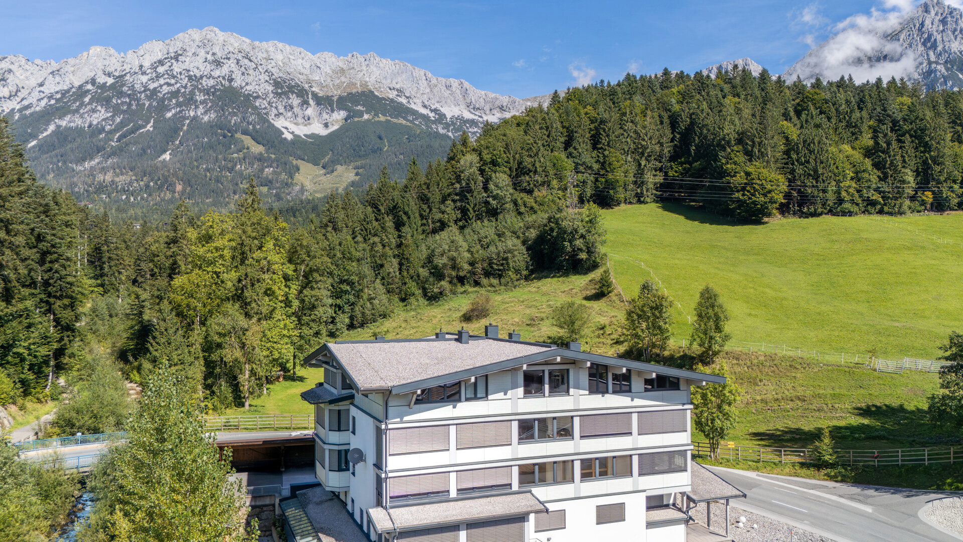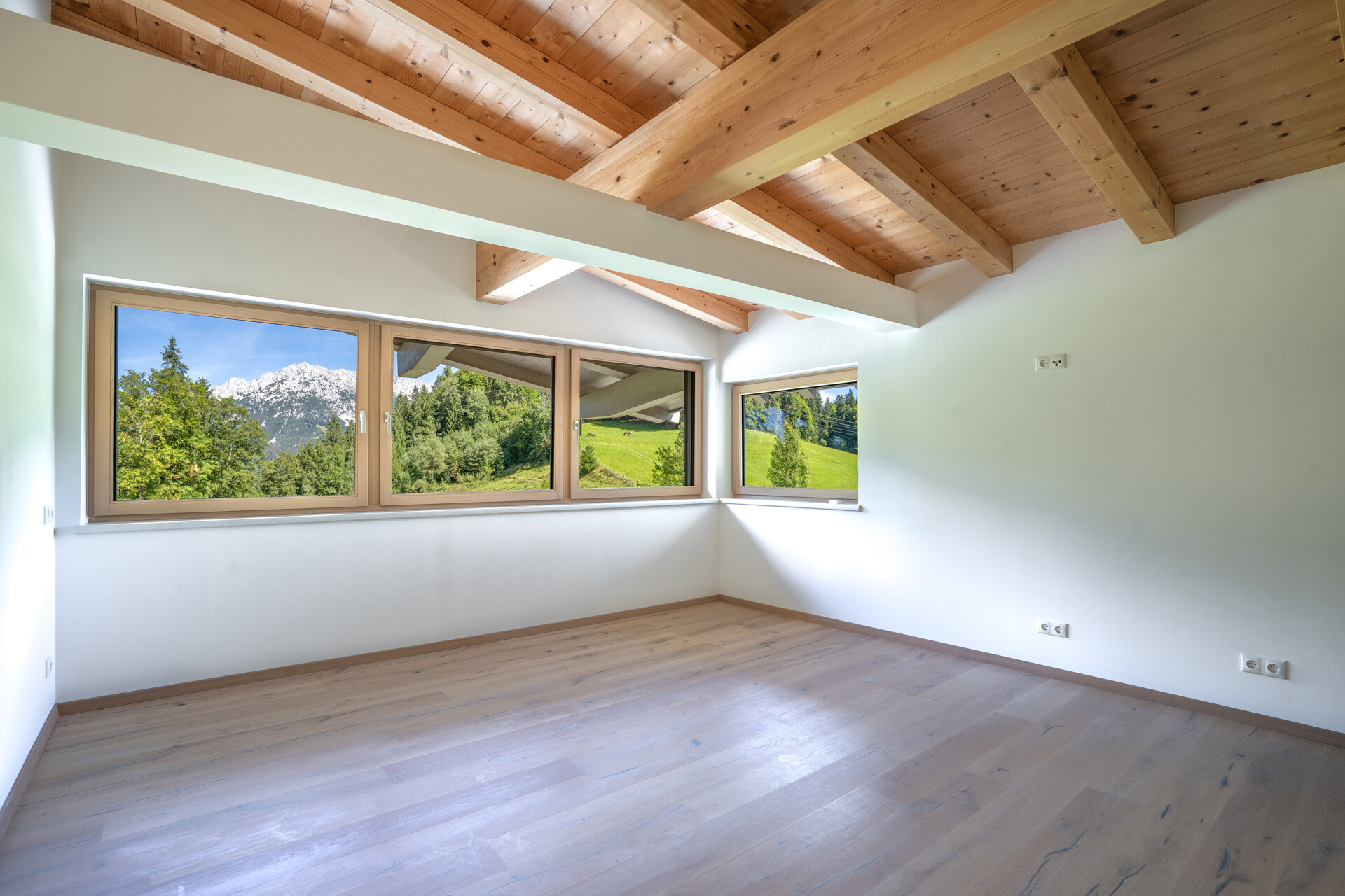 Diese stilvolle Dachgeschosswohnung befindet sich in einem gepflegten Mehrfamilienhaus im Zentrum von Scheffau und besticht durch ihre außergewöhnlich attraktive Lage. Nur wenige Schritte trennen Sie von der Gondelbahn in die SkiWelt, der direkten Zugang zu einem der größten Skigebiete Österreichs bietet. Auch der Golfplatz in Ellmau liegt in unmittelbarer Nähe und rundet das vielseitige Freizeitangebot ab. Die rund 119 m² große Wohnung überzeugt mit einem großzügigen Wohnbereich, einer offenen Küche und einem angrenzenden Esszimmer, das sich ideal für gesellige Abende eignet. Zwei helle Schlafzimmer und zwei moderne Bäder mit Dusche und WC schaffen ausreichend Platz und Komfort. Große Fensterfronten lassen viel Tageslicht in die Räume und eröffnen zugleich den Blick auf die umliegende Bergwelt. Besonders hervorzuheben ist die flexible Gestaltungsmöglichkeit: Ein Teil des Wohnbereichs oder eines Schlafzimmers kann durch eine Glaswand abgetrennt werden und so als gemütliche Lounge oder Wintergarten dienen. Ebenso besteht die Option, die äußeren Fenster zu öffnen und daraus einen Balkon entstehen zu lassen. Hochwertige Eichenholzböden verleihen der Wohnung ein warmes und einladendes Ambiente. Abgerundet wird das Angebot durch zwei Autoabstellplätze im Freien sowie ein praktisches Kellerabteil. Zusätzlich steht ein Carportstellplatz zum Erwerb bereit.